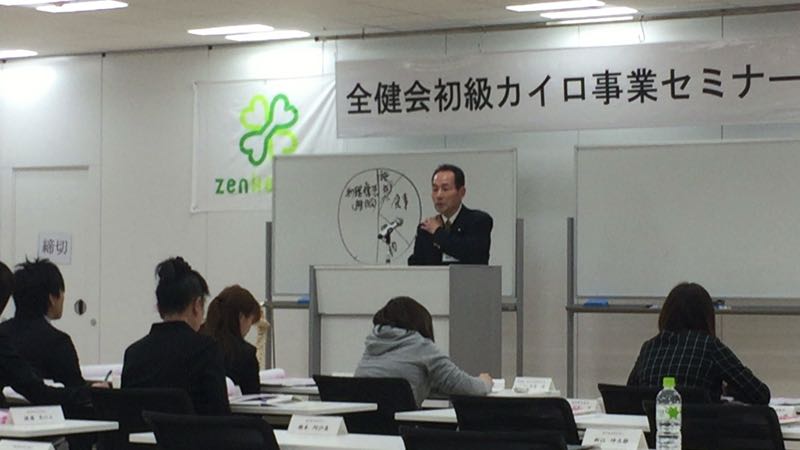 全国健康生活普及会主催、日本カイロプラクティック連合会後援による初級カイロ事業セミナー(本部会場)にて。